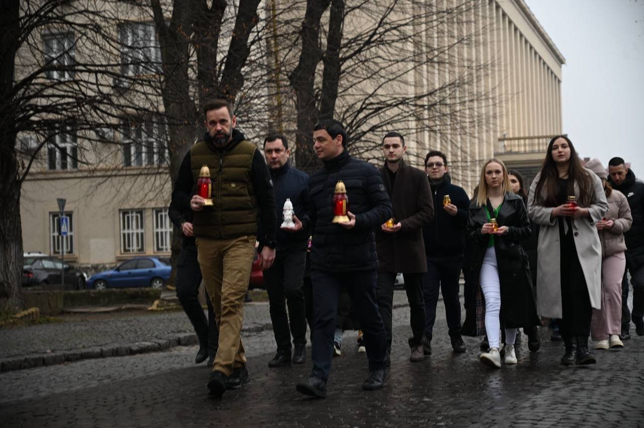 Подвиг Героїв Небесної Сотні в Ужгороді хвилиною мовчання вшанували голова Закарпатської ОВА Віктор Микита, очільник обласної ради Роман Сарай, студентство та молодь краю.